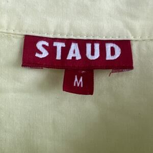 Staud Payton Top in Sunray. Size M / Medium. Features mid-weight, non-stretch poplin fabrication, point collar, long sleeves with button cuffs, front button placket, slits at sides, oversized silhouette, patch breast pockets. 98% cotton, 2% spandex. Excellent condition, no flaws.