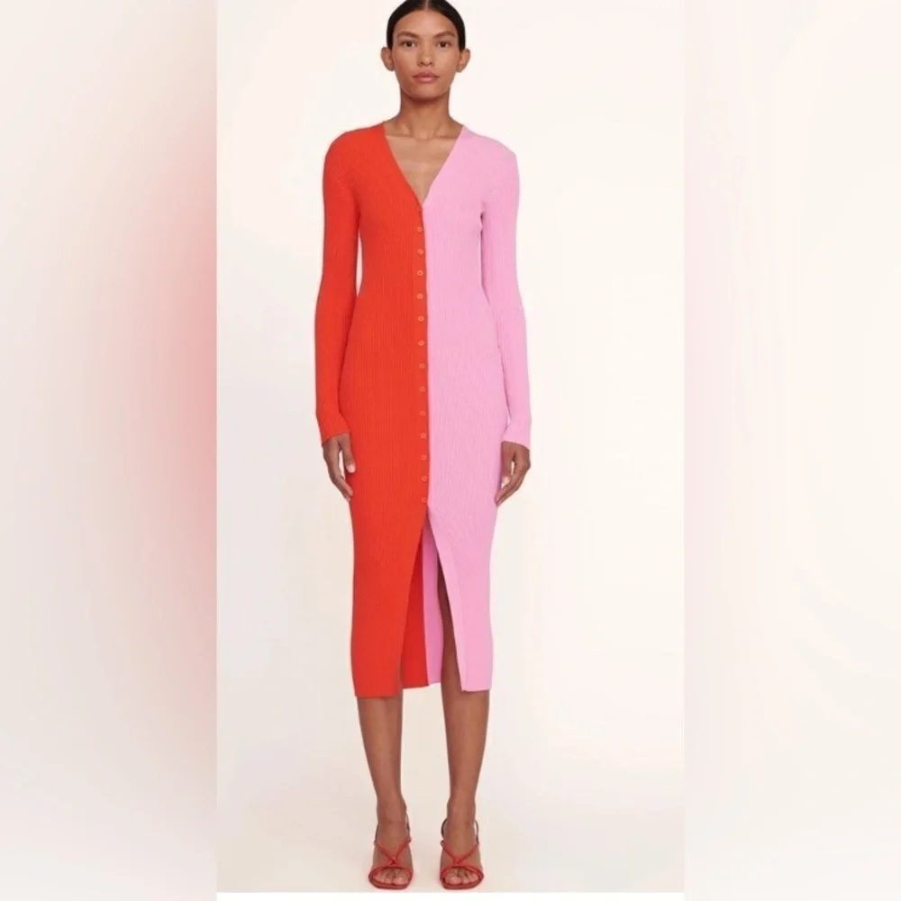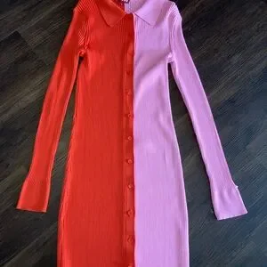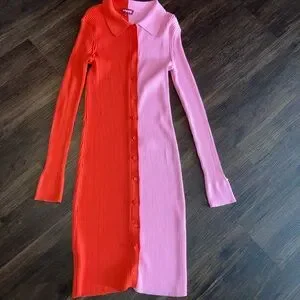 Staud Pink and red Colorblock Long Sleeve Dress with buttons size L