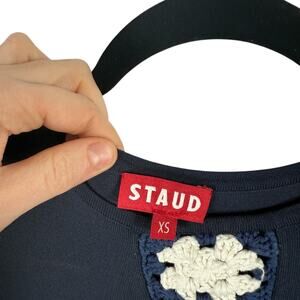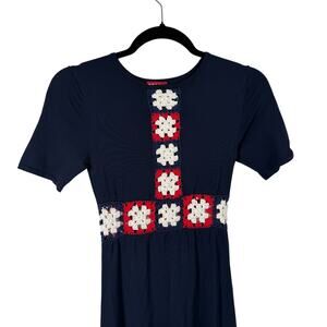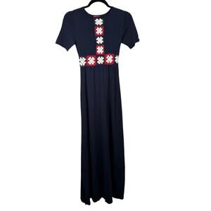 Staud Plage Navy Blue Crochet Panel Maxi Dress Cottage Womens Size XS