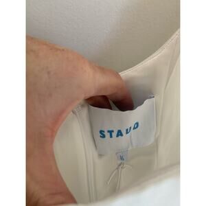 STAUD creates empowering, accessible clothing with a vintage vibe and a modern sensibility. Founded by Sarah Staudinger and George Augusto in 2015, STAUD specializes in the art of dressing well through the juxtaposition of timelessness and irreverence. Whether it's a sharp structured handbag, a modern dress, or a skirt and jacket combination, everything STAUD creates shirks expectation through proportion and thoughtful design.
