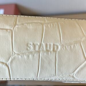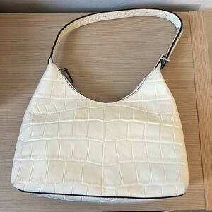 Staud Scotty Crocodile Embossed Monogram Leather Hobo Bag In Cream