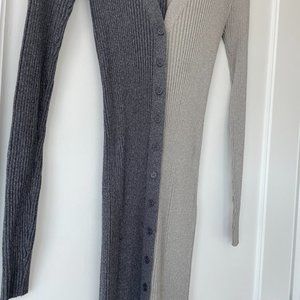 Style this long rib-knit cardigan multiple ways—wear it casually layered by day or buttoned as a form-fitting sweater-dress for a night out.