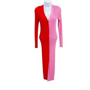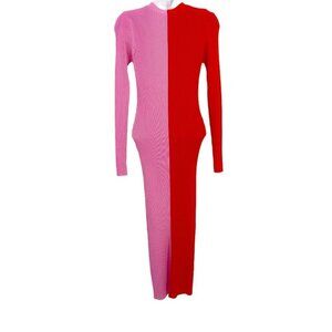 Staud Shoko Ribbed Cardigan Sweater Dress Colorblock Two Tone Midi Pink Red