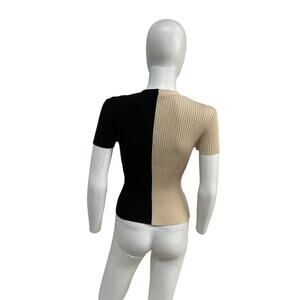 Staud Short Sleeve Black Viscose Cargo Sweater Size M