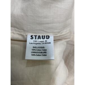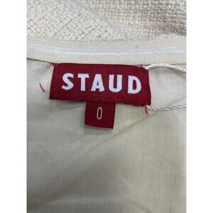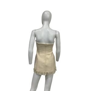 Staud 'Silvia' Cream Cotton Top Size 0: mid-weight, non-stretch tweed, fringe at hem, strapless, hidden zip at back, lined.