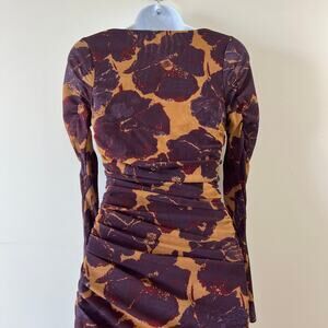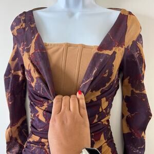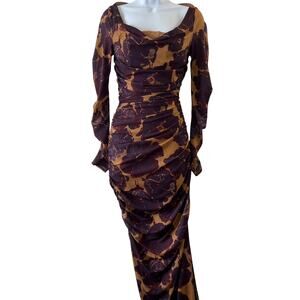 Staud Solana Floral Corset Ruched Mesh Long Sleeve Maxi Dress Womens XS