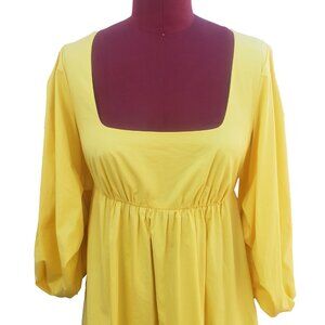 Staud Sophie Dress Yellow Poplin Square Neck 1/2 Sleeve Empire Waist Small