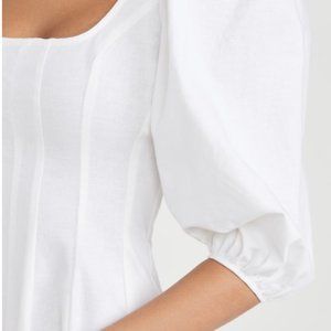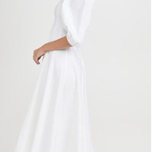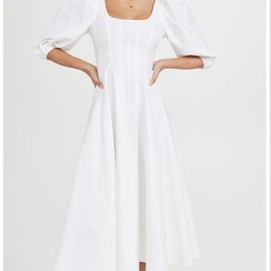 With its square neckline, corseted bodice, and A-line skirt, this linen STAUD dress feels like an instant classic. Finish your outfit with understated pumps for a distinguished look.