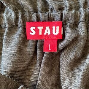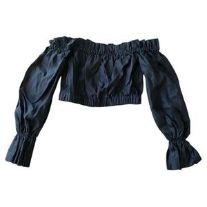 Staud Tristan 100% Linen Black Off Shoulder Puff Sleeve Crop Top NWT Size Large