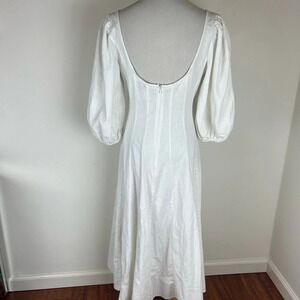 Staud White Linen Midi Dress Puff Sleeves Size 6