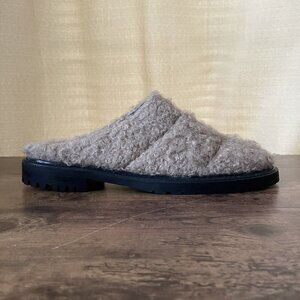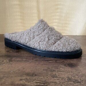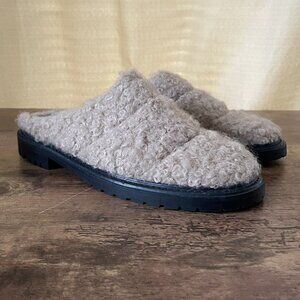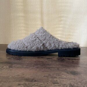 Staud Womens Astro Mules 39 US 9 Beige Faux Shearling Black Leather Slip On Shoe