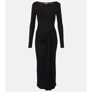 Staud Women's Black Long Sleeve Bodycon Gres Draped Midi Dress Size Large NWOT