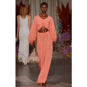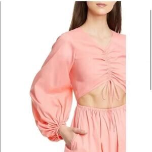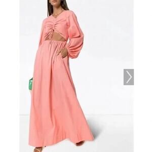 Staud Womens Coral V-Neck Tangier Ruched Cut Out Long Sleeve Nylon Maxi Dress S $375