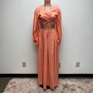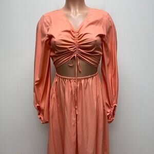 Staud Womens Coral V-Neck Tangier Ruched Cut Out Long Sleeve Nylon Maxi Dress S