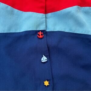 Staud Women’s Nautical Striped Navy Yellow Red Boxy Collared Button Blouse Top L