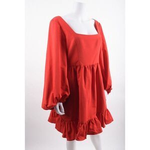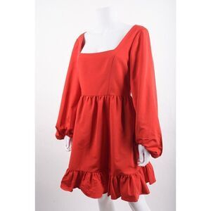 Staud Womens Seth Mini Dress Square Neck Sz 10 Red Poinsettia NWT No belt