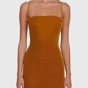 Staud Women's Velvet Bellamy Lace Up Dress Ocher