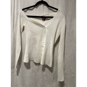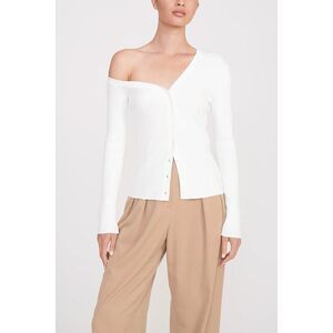 Staud Women's White Ribbed Asymmetric One Shoulder Craftsman Cardigan Large NWOT