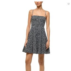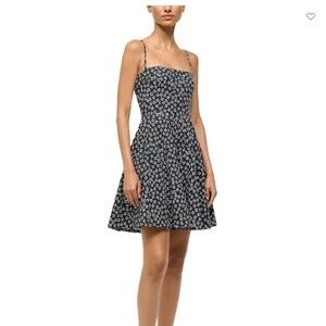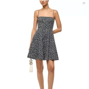Staud Wylie Printed Mini Dress - Black Woodblock Floral, size 6