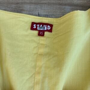 Yellow cotton (98% Cotton, 2% Spandex). Hourglass. Square neck. Three-quarter sleeves. Pull-on. 34" from shoulder to hemline. Imported.