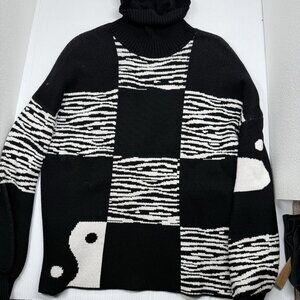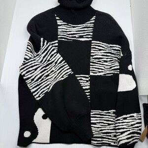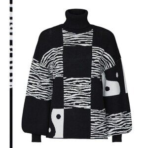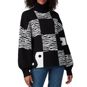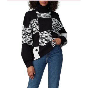 Staud Zedd Sweater L Black White Zebra Print Yin Yang Turtleneck Oversized Knit