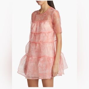 Featuring a classic tiered babydoll silhouette, Staud's Mini Hyacinth dress is crafted of a sheer organza in a subtle floral print. A stretch cotton blend slip lining completes the look.
