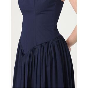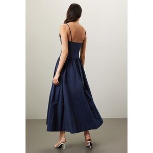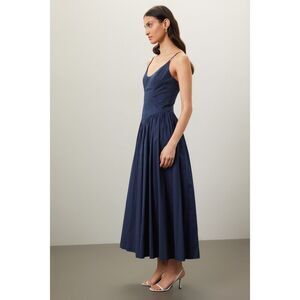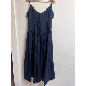 Staud Women's Navy Spaghetti Strap Drop Waist Poplin Dena Maxi Dress Size 12 NWOT