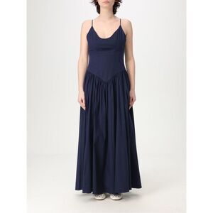Staud Women's Navy Spaghetti Strap Drop Waist Poplin Dena Maxi Dress Sz 12 NWOT