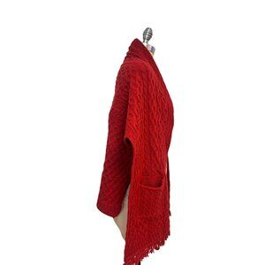 Stauer Cape Merino Wool Red NWOT Fringe Hem Pockets