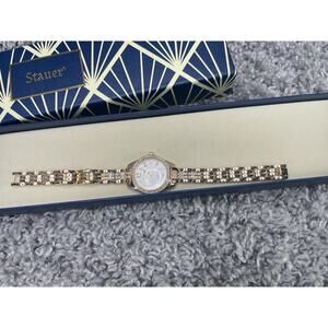 Stauer Diamond Aura Gold Tone Womens Watch Gold Tone Crystals Preowned