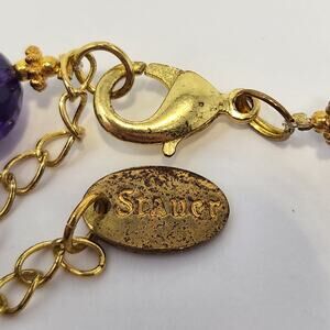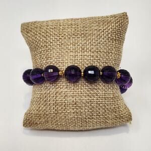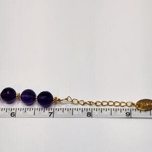 Stauer Purple Faceted Glass Bead Bracelet Gold Tone Accents Adjustable Signed