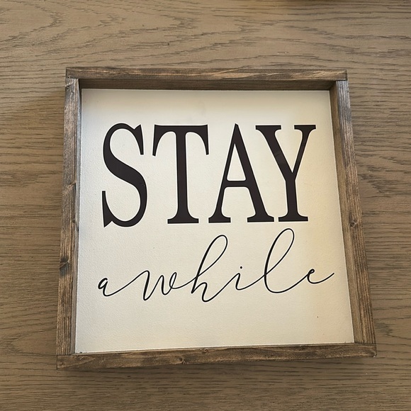Modern farmhouse wall decor, Stay Awhile sign. Measures 12”x12” Frame made from real wood.