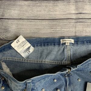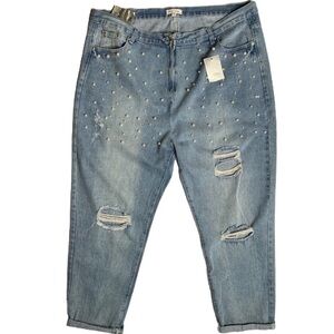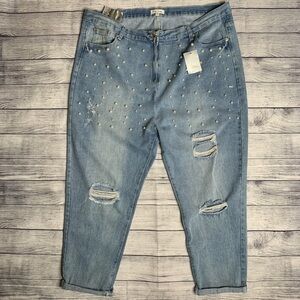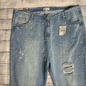 Stay chic high waisted jeans w/ pearl embellishments