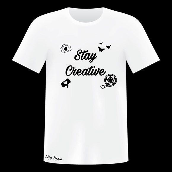 Custom Stay Creative Short Sleeve T- shirt available in small- large white and black colors available