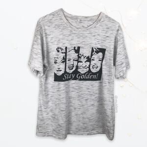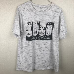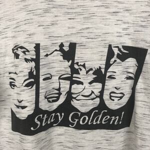 Size large Golden Girls shirt. Small mark near graphic, and mark on back. Unsure what the mark on back is, possibly a manufacturing error.