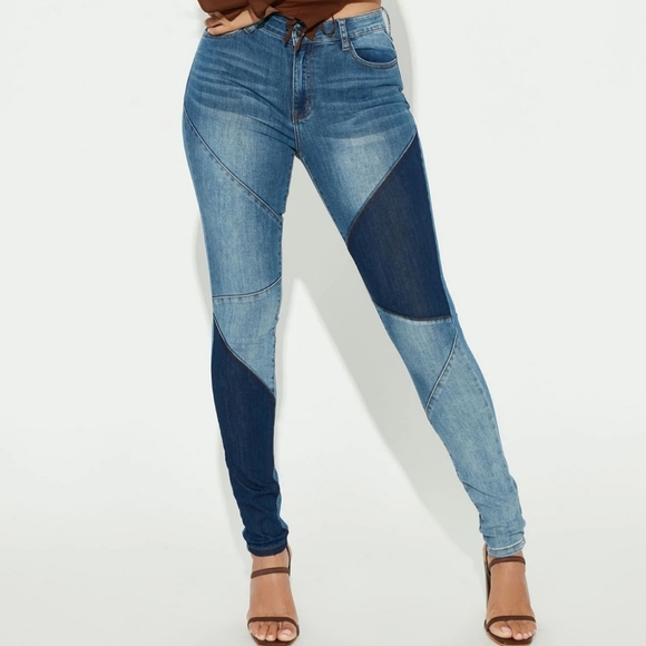 Stay In Line Patchwork Denim Stretch Jeans Large