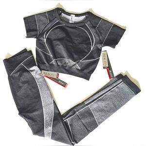Stay On Track Set This set features a stretchy fabric, non-padded sports bra, round neckline, short sleeves, high-waisted leggings, linear detail, no closures.