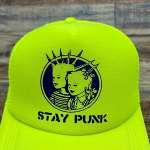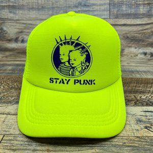 Stay Punk Mens Trucker Hat Neon Yellow Snapback Thrash Death Metal Baseball Cap
