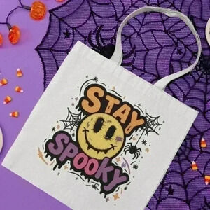 Halloween tote bag, Stay Spooky bag, reusable canvas bag, eco-friendly tote, Halloween shopping bag, trick-or-treat bag, Halloween gifts, spooky tote, durable canvas tote, Halloween accessory, Halloween merchandise, Halloween 2024, festive tote bag, Halloween themed bag, sustainable shopping bag.