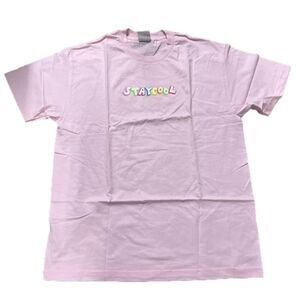 Stay cool Logo Printed Graphic Funk T-Shirt Short Sleeve Unisex Pink Rose M NWT