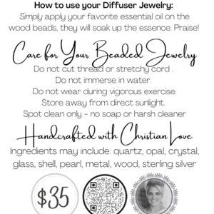 Each piece is designed with a variety of semi-precious stones and untreated wood beads. A refillable essential oil bottle is included with each purchase ☺️