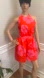 Red and pink printed cotton poplin (98% Cotton, 2% Spandex). Romper. Sleeveless. Halter neckline with adjustable self-tie closures. Elastic wasitband with cut out details. 34" from shoulder to hemline. Imported.