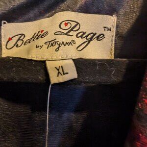 Flirty and fun! Bettie Page brand dress with built in petticoat is just right for a celebration. Pair with black lace gauntlets and stockings and prepare to turn heads.