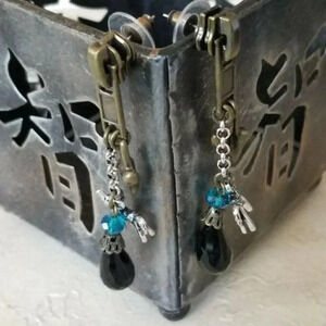 Steampunk Antiqued Brass Zipper Heart Crystal Chain Kitchen Sink Earrings