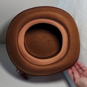 Embrace the steampunk style with this brown top hat featuring vintage goggles and unique clock detailing. Perfect for adding a touch of retro flair to any outfit.