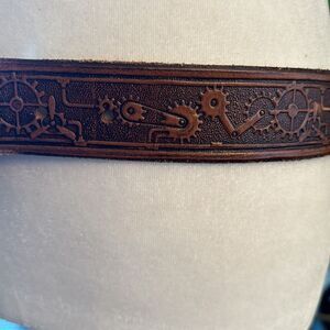 Steampunk Gears Embossed Leather Belt