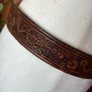 Vintage Embossed Leather Belt. No Brand Markings. Approximate measurements: Leather 40.5” x 1.25"; Buckle 2".