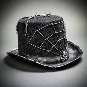 Steampunk Gothic Top Hat with Skull & Spider Web