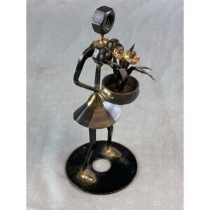 Steampunk Metal Bolt Nut Flower Lady Figurine Industrial Estate Art Handmade