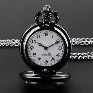 Steampunk Pocket Watch Motorcycle RT 66 Biker Chain Quartz Analog Gift NWT Black